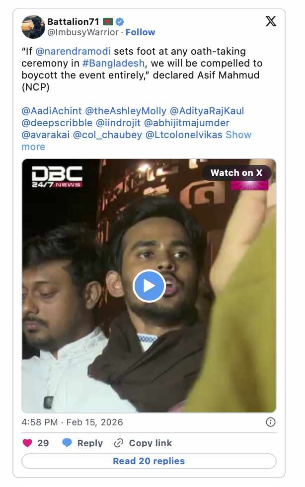 However, her host country went the other way. Far from criticising the election, the government of India welcomed it warmly. Prime Minister Narendra Modi was the first global leader to congratulate Bangladesh’s prime minister-elect Tarique Rahman, tweeting out his regards in Bengali for added effect. On Tuesday, the Lok Sabha speaker will represent India as Rahman’s swearing-in ceremony.